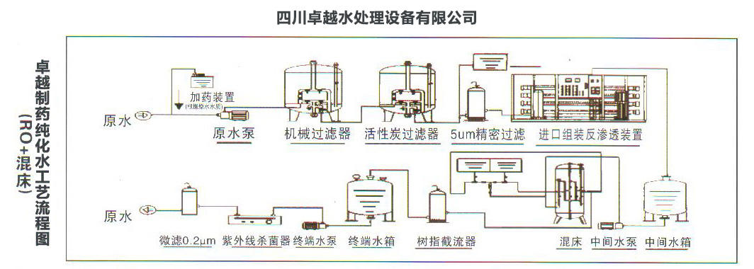 ※ 預處理系統(tǒng)由原水箱、原水泵、機械過濾器、活性碳過濾器、軟化器、保安過濾器或原水箱、原 水泵、機械過濾器、保安過濾器、超濾組成;